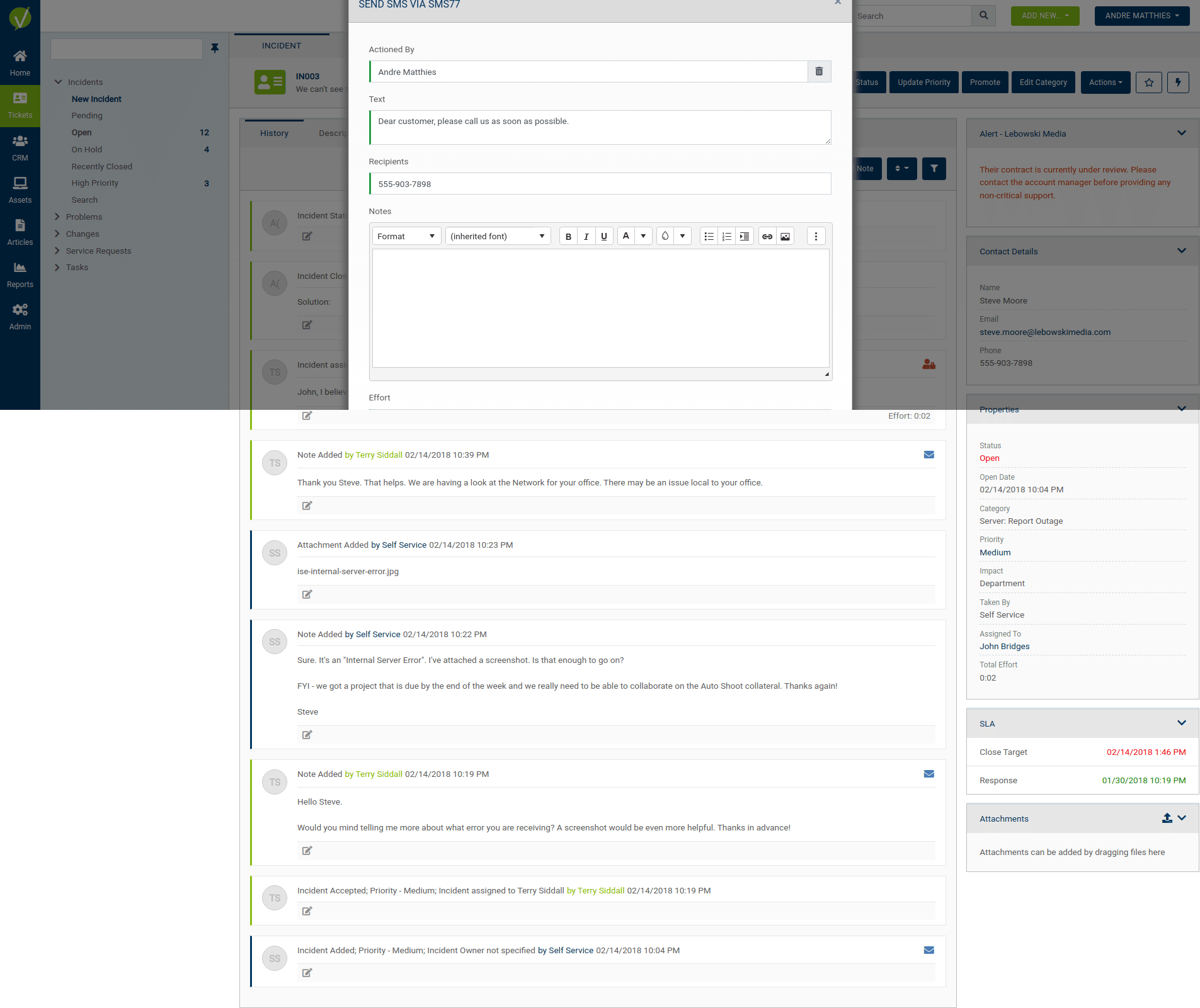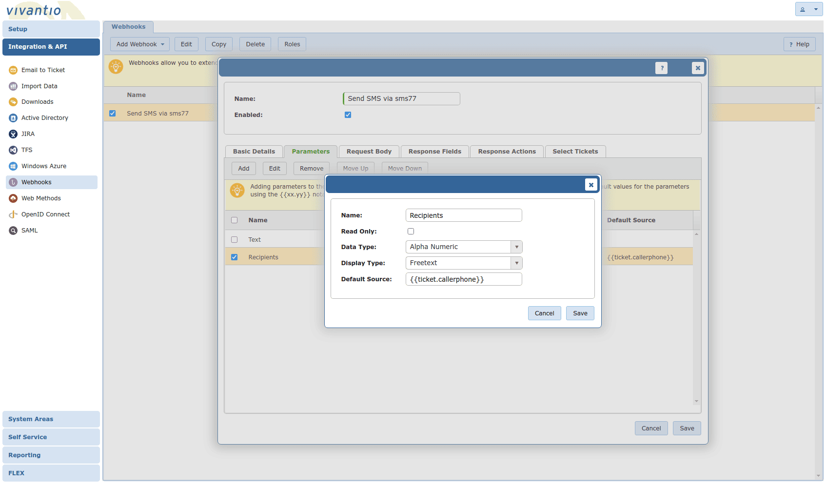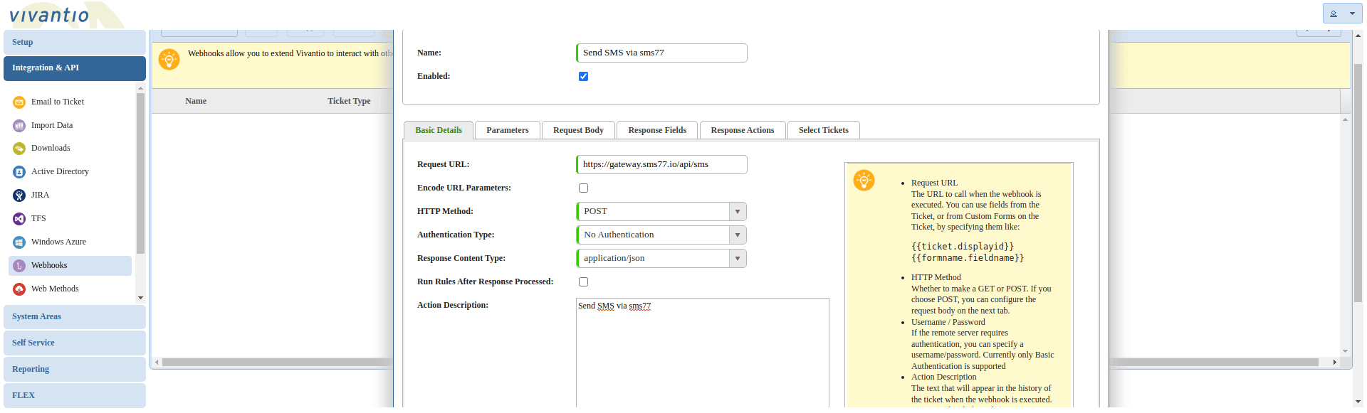 Vivantio is an excellent customer service management software and offers integrated features to add SMS dispatch in just a few steps. This document describes how this is implemented.