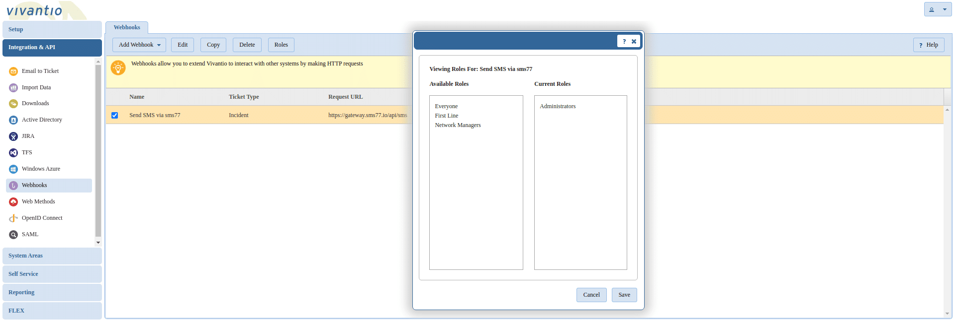 Use drag & drop to ensure that Current Roles is not empty. Only users assigned to this role can use our webhook.